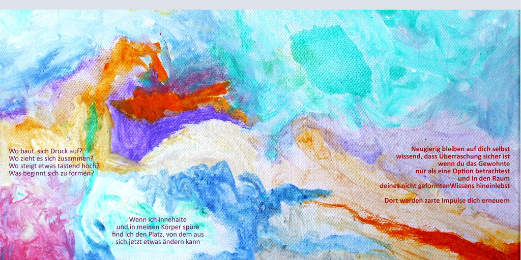 > In meinem Büro hängt Deine poetische Anleitung zu innerer Bewegung und Stille …. Sowohl die Texte als auch die Bilder geben immer wieder Anlass zu spannenden Gesprächen. Ich erfreue mich jeden Tag daran."