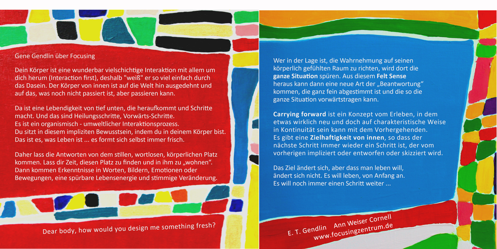Gendlin, E.T.: Focusing-orientierte Psychotherapie, Pfeiffer Verlag.