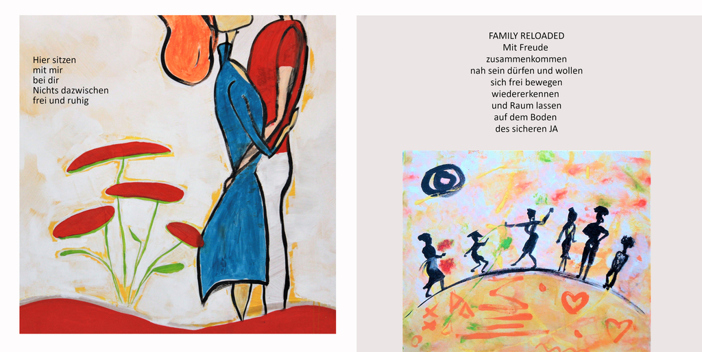 > Und wenn ich wie jetzt grad in nicht so guter Stimmung bin, ist es wunderbar, immer wieder mal einen Blick hineinzuwerfen in deine Sammlung, die jetzt bei uns am Küchentisch hängt. Die erste Tasse Kaffee am Morgen, etwas Stille und diese Fülle an Ge-danken und Impulsen. Und dann ist es, als wäre ich bei dir in Boppard und etwas kommt in Gang, oder ich finde das Vertrauen das ich mich wieder anders fühlen kann. Es ist wirklich großartig, Zugänge zu finden, wenn man mit Denken und Worten nicht weiterkommt. Einfach gucken oder lesen.... Vielen lieben Dank Sybille, wenn ich jemandem deine Arbeit oder deine Persön-lichkeit beschreiben sollte würde ich einfach diese Bände zeigen."
