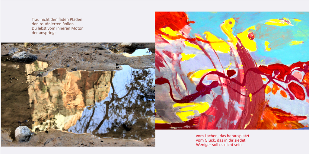 Nebenbei sind Bilder, Fotos und kleine Poems entstanden, die meine Erfahrungen vom Leben spiegeln. Und da es schon viele Methodenbücher gibt, möchte ich hier für Aufgeweckte, Interessierte und